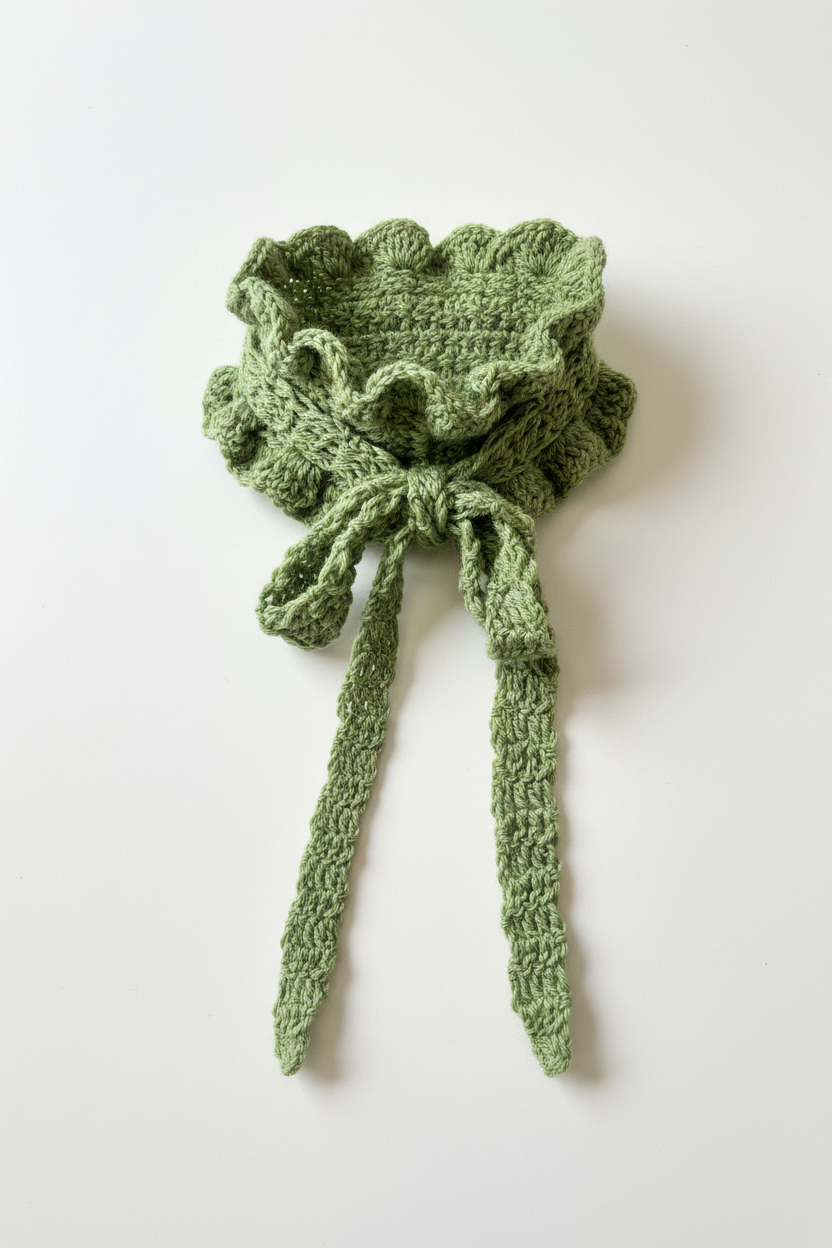 A delicate and romantic accessory that adds a touch of artisanal elegance to your look. The crochet ruffle edge creates a soft and feminine effect, while the long ties allow you to tie it in different ways.