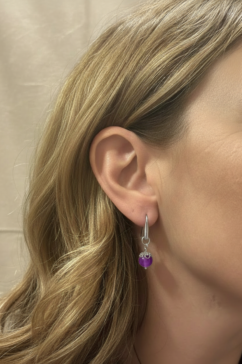 The Astra earrings embody elegance and simplicity, with a minimal design that enhances the beauty of the 8 mm semi-precious stone. The steel lever, available in gold or silver, creates a perfect balance between refinement and modernity.