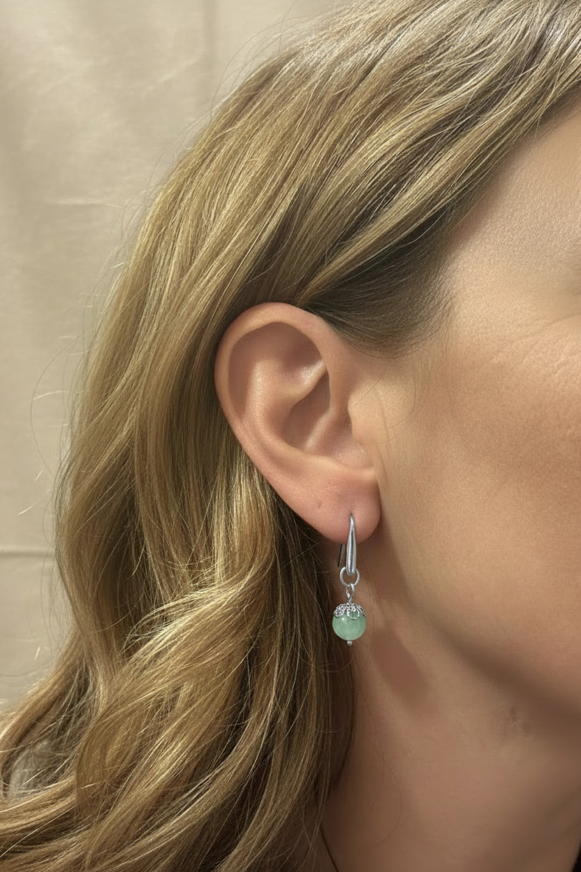 The Astra earrings embody elegance and simplicity, with a minimal design that enhances the beauty of the 8 mm semi-precious stone. The steel lever, available in gold or silver, creates a perfect balance between refinement and modernity.